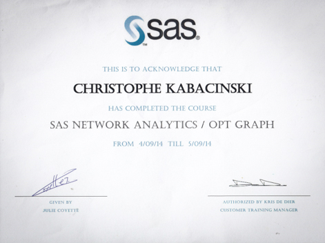 SAS certified reinforced by business certificates in AML and Data Mining.